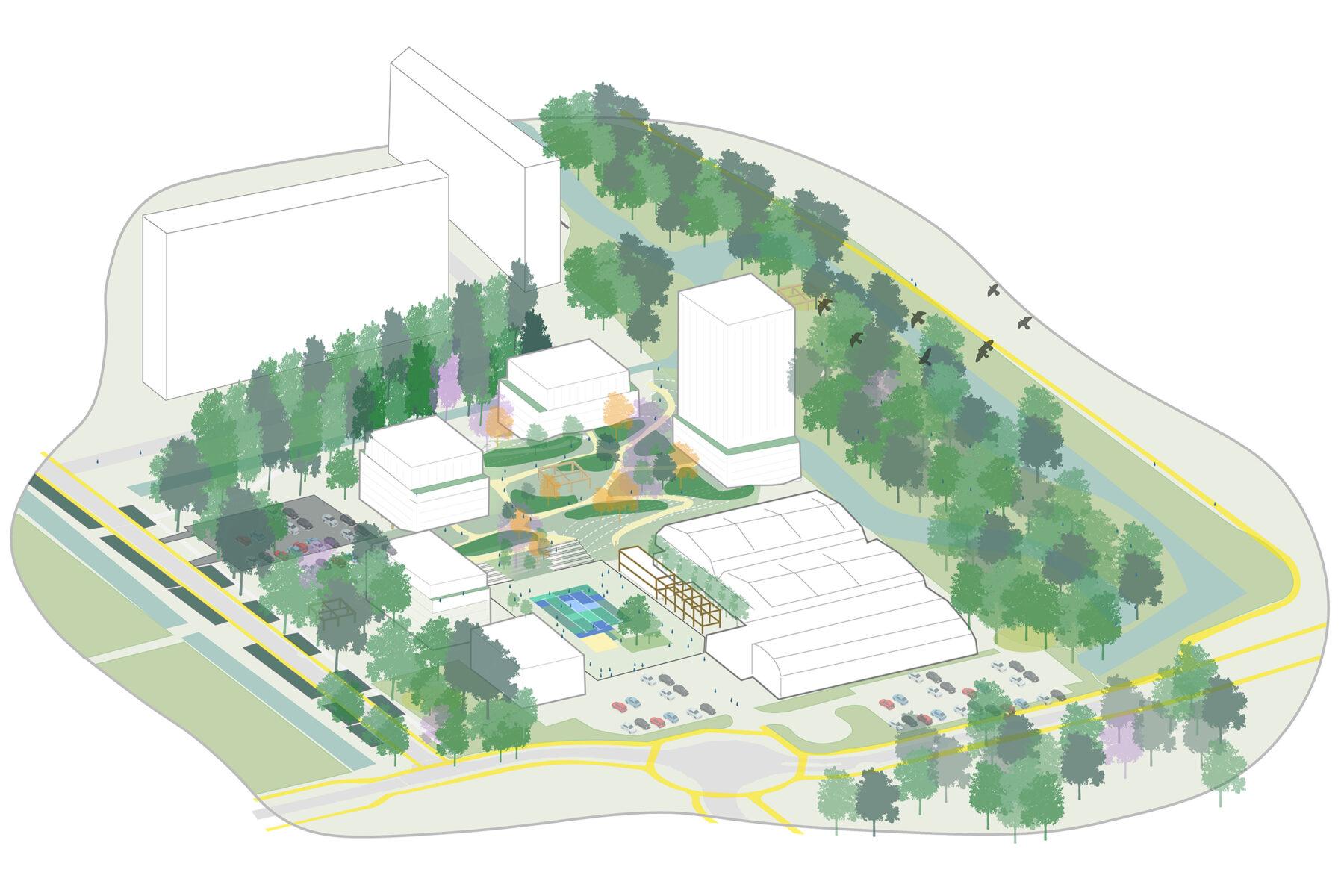 Bringing together—and creating connections between—all the different elements forms the core from which the area’s new and distinctive identity unfolds: a place for movement, sports, and well-being for the conscious urban resident of today and tomorrow.